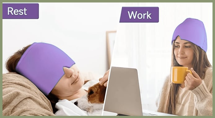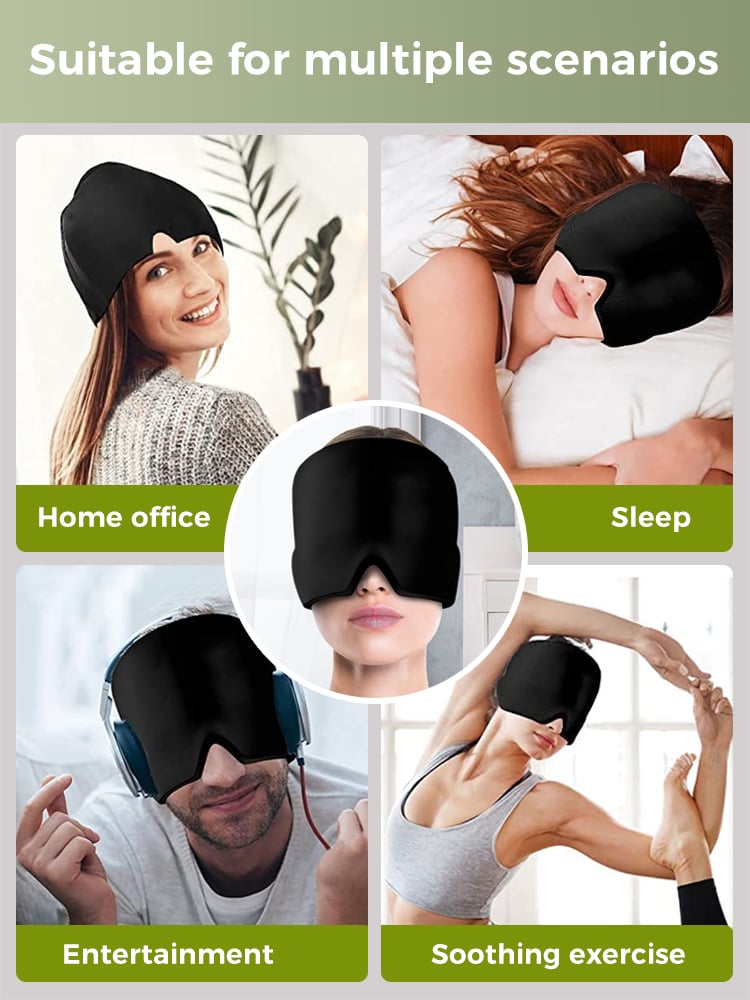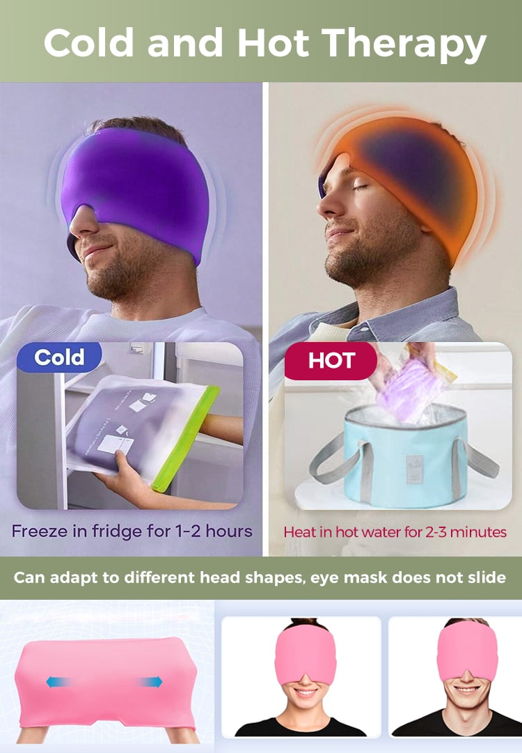 The combination of the cold and the snug fit feels great, and it also blocks out light. We often use it after being outside in the heat as a way to cool down.