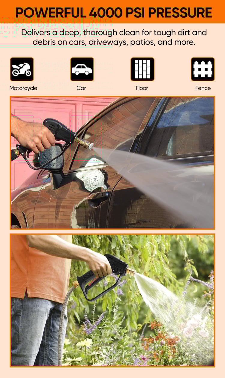 This pressure washer gun blasts away dirt effortlessly. Used it on my driveway and patio, and they look brand new!