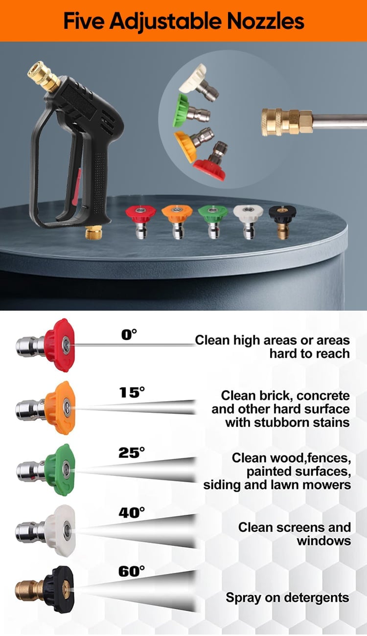 The five nozzles make cleaning so convenient—perfect for my car, garden tools, and even outdoor furniture!