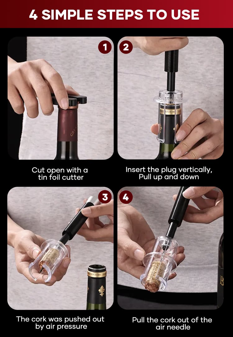 I love how simple this opener is—just a few pumps and the cork pops right out. No more struggling or broken corks. Perfect for when guests are over!